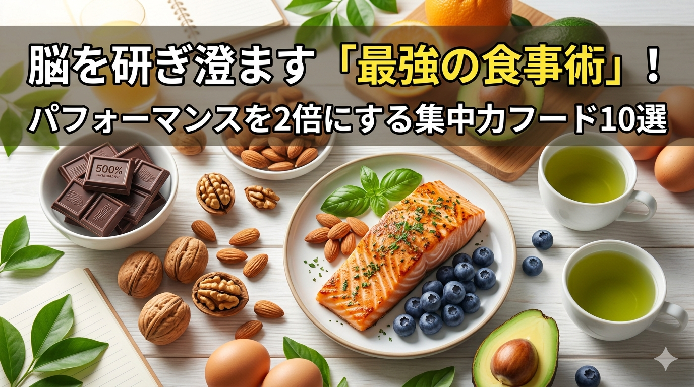 この記事では、科学的に裏付けられた「脳に効く食材(ブレインフード)」を10種類厳選してご紹介します。さらに、脳のパフォーマンスを最大化する「食べ方のルール」と、逆にパフォーマンスを下げてしまう「やってはいけない食べ方」まで、徹底的に解説します。