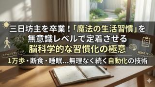 「続かない」のは意志が弱いからではありません。脳の仕組みを知れば、1万歩ウォーキングも18時間断食も、歯磨きと同じ「無意識の習慣」に変わります。三日坊主を卒業し、魔法の生活習慣を自動化する脳科学的な極意を、実体験を交えて徹底解説!