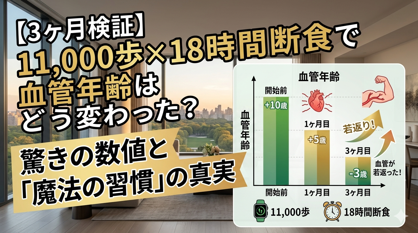 【3ヶ月検証】11,000歩×18時間断食で血管年齢はどう変わった?驚きの数値と「魔法の習慣」の真実