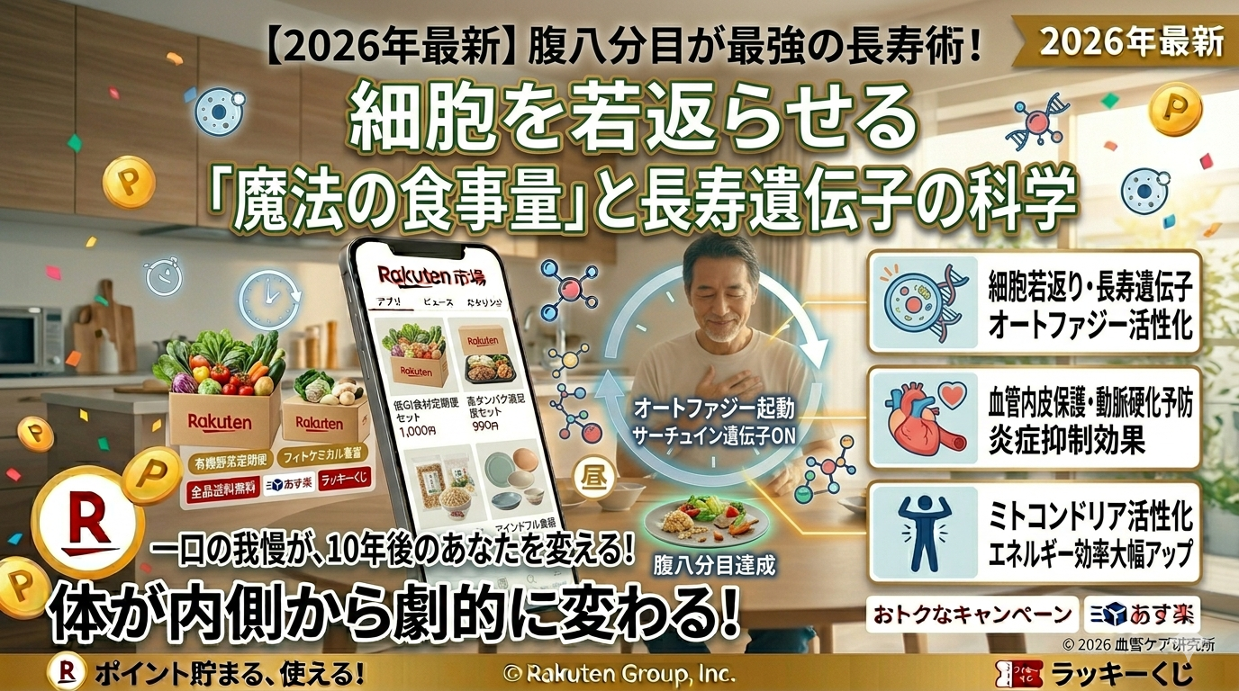腹八分目とは、細胞の大掃除(オートファジー)を起動し、長寿スイッチ(サーチュイン遺伝子)を押し、血管を内側から若返らせる、科学的に証明された最強の健康投資です。