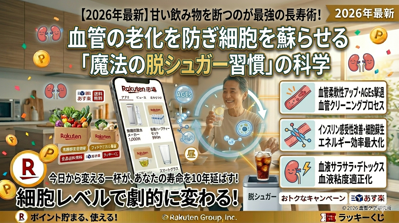 Q1:人工甘味料や「カロリーゼロ」の飲み物なら、血管は老化しませんか? A1:いいえ、過度な依存は禁物です。 2026年現在の研究では、人工甘味料は血糖値を直接上げないものの、脳の報酬系を刺激し続け、「甘味への依存」を断ち切るのを難しくすることがわかっています。また、腸内細菌叢への影響や、インスリン感受性を低下させる可能性も指摘されています。血管を根本から若返らせるなら、人工的な甘さからも距離を置く「魔法の脱シュガー」が最も効果的です。