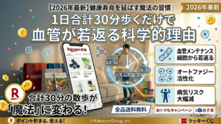 適度な運動 【2026年最新】健康寿命を延ばす魔法の習慣|1日合計30分歩くだけで血管が若返る科学的理由 健康寿命を延ばす鍵は「1日合計30分」の歩行にあり!2026年最新科学が証明した、細切れ歩行が血管を若返らせる驚きのメカニズムを解説。一気に歩く必要はありません。隙間時間の散歩を「魔法の習慣」に変え、病気にならない体を手に入れる方法を公開中。 2026.04.18 適度な運動魔法の生活習慣