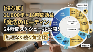 健康的な生活習慣 【保存版】11,000歩×18時間断食「魔法のルーティン」24時間スケジュール公開!無理なく続く黄金比 11,000歩と18時間断食を両立する「黄金の24時間スケジュール」を公開!仕事や家事で忙しくても無理なく続くタイムテーブルを、朝型・夜型などライフスタイル別に徹底解説。血管年齢を若返らせる最強ルーティンを、今日からあなたの生活に即導入。 2026.04.07 健康的な生活習慣